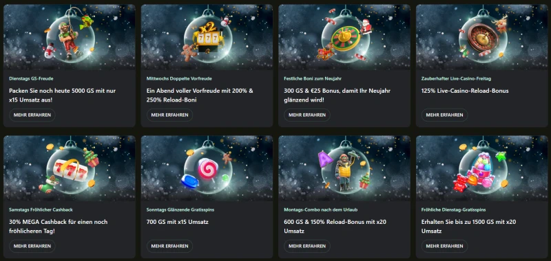 | Magischer Live-Casino-Freitag | 125% Live-Casino Reload Bonus + 150 € | x35 Umsatz |